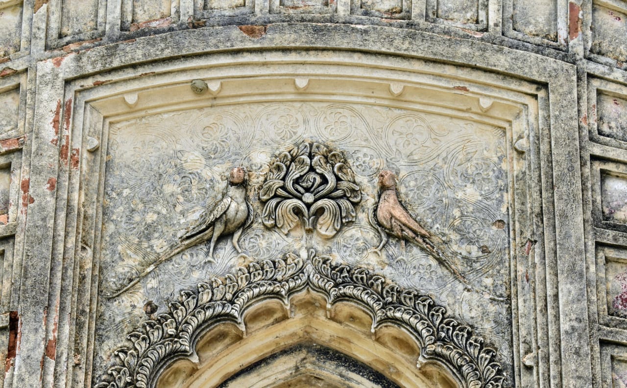 উপরের ছবি পঙ্খ কাজের দুপাশে শুক সারি, শ্রীবাটি।