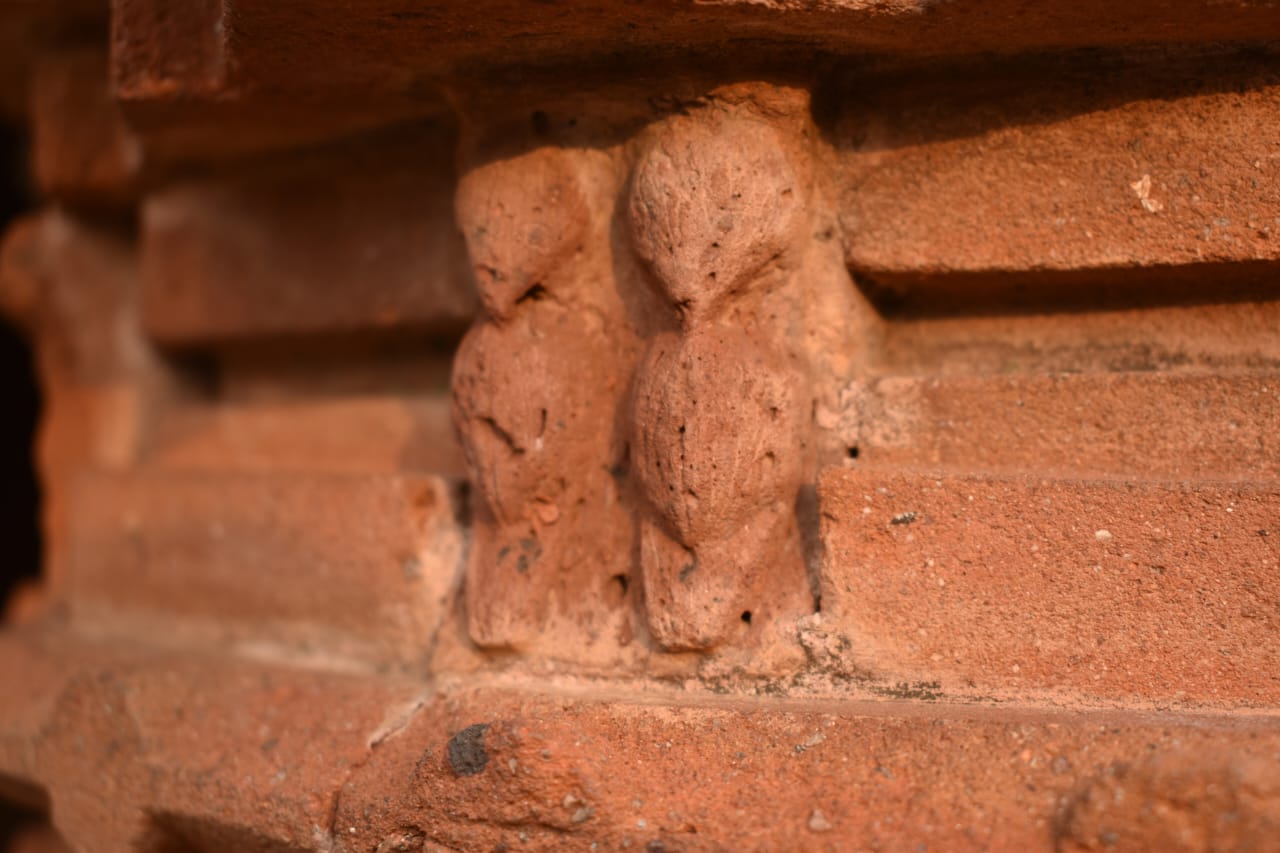 নীচের ছবি মন্দিরের থামে পাখি যুগল, বর্ধমান।