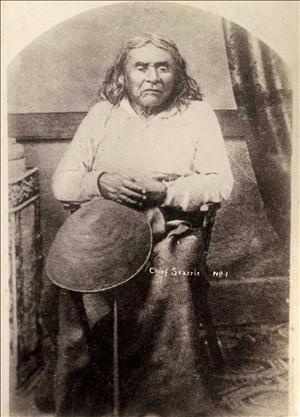 (চিফ সিয়াটলের ১৮৬৪ সালের ফটো। তুলেছিলেন E. M. Sammis, Courtesyঃ Seattle Public Library। নীচে চিফ সিয়াটলের কন্যার ফটো।)